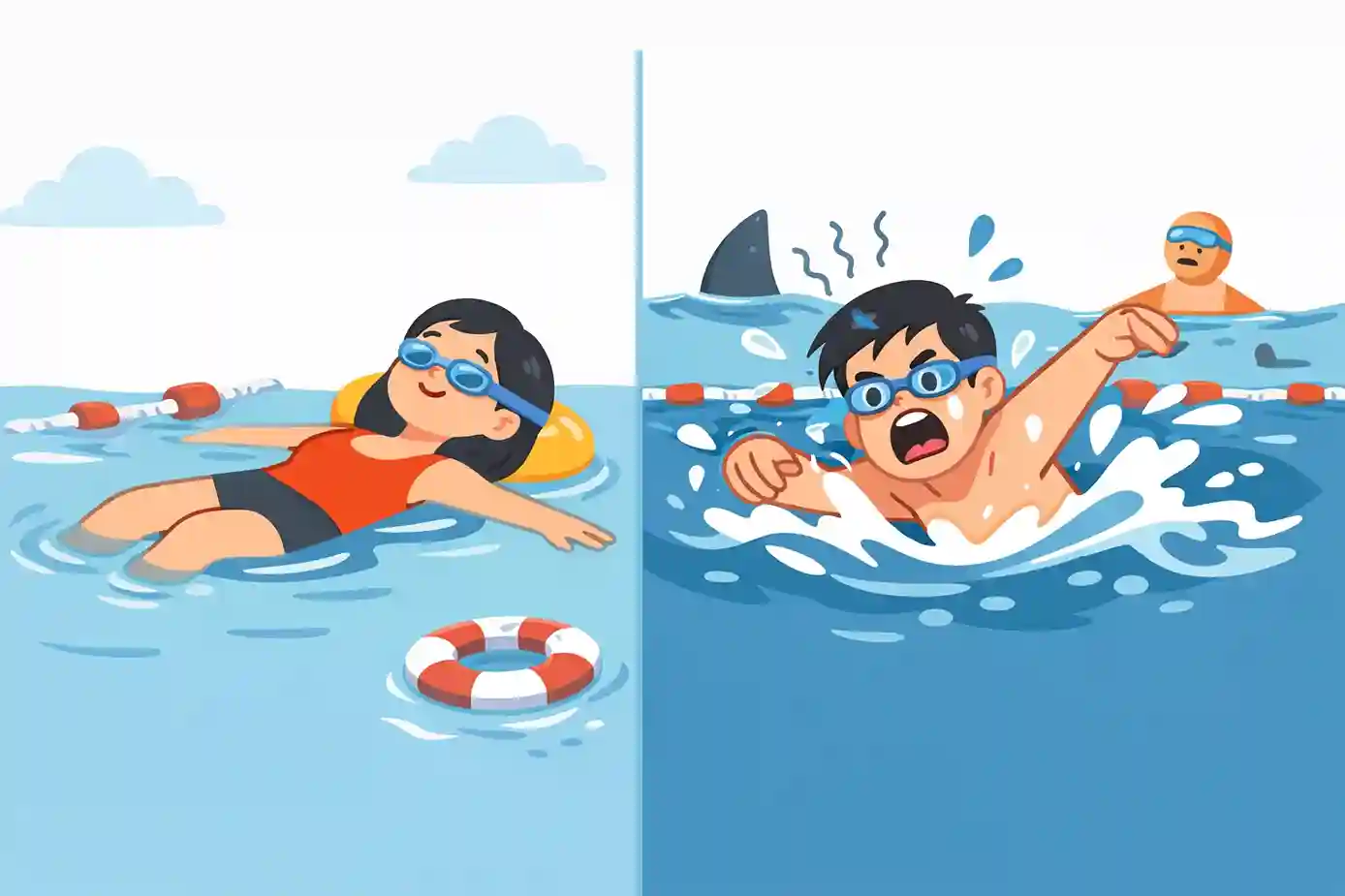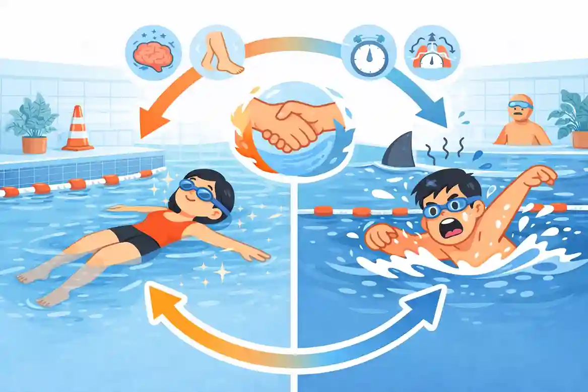 Masalahnya, ketika tubuh belum merasa aman, gerakan justru memicu respon stres. Sistem saraf masuk ke mode fight or flight: napas memburu, otot menegang, dan koordinasi menurun. Di titik ini, berenang bukan lagi keterampilan, tapi reaksi bertahan hidup.