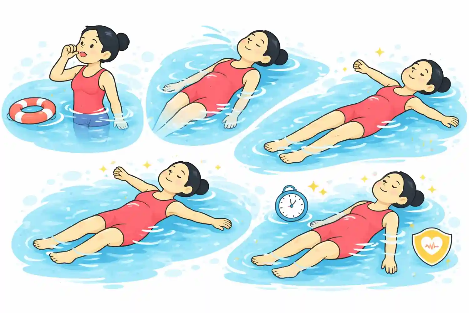 Yang perlu dilakukan: bernapas alami dan percaya pada air. Yang tidak perlu dilakukan: mengayuh, menendang, atau menahan napas berlebihan.