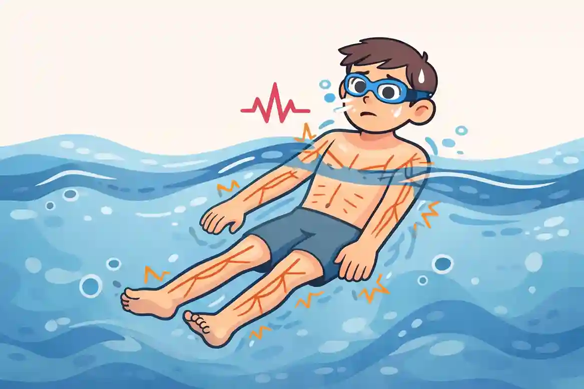 Napas pendek mengurangi udara di paru-paru. Karena secara spontan oksigen memberikan prioritas pada otot besar. Sehingga tangan dan kaki seolah kaku seperti besi. Otot tegang inilah yang membuat tubuh terasa berat saat di air.