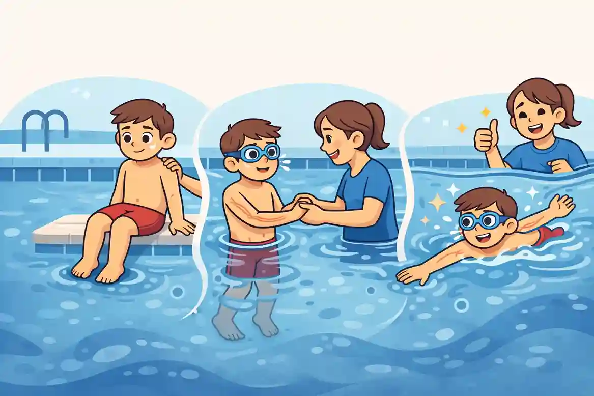 Pendekatan bertahap (graded exposure) sering digunakan dalam terapi trauma. Prinsipnya sama di air: sedikit demi sedikit, level demi level, dengan layer yang lebih banyak pada umumnya tanpa paksaan.